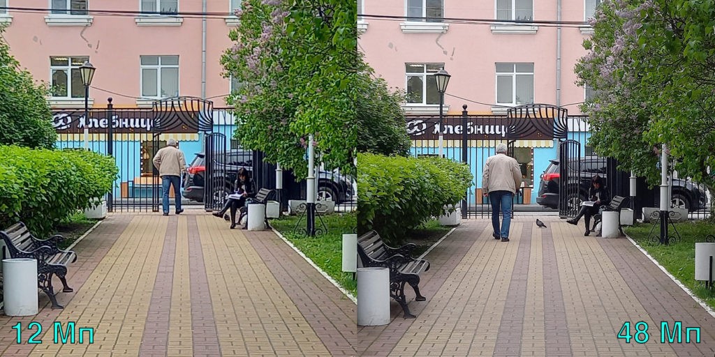 И всё же в 48-Мпиксельном режиме детализация заметно выше. Учитывайте это, если потребуется в последующем приближать снимки при просмотре, чтобы получше рассмотреть объекты и надписи на снимках вдали.