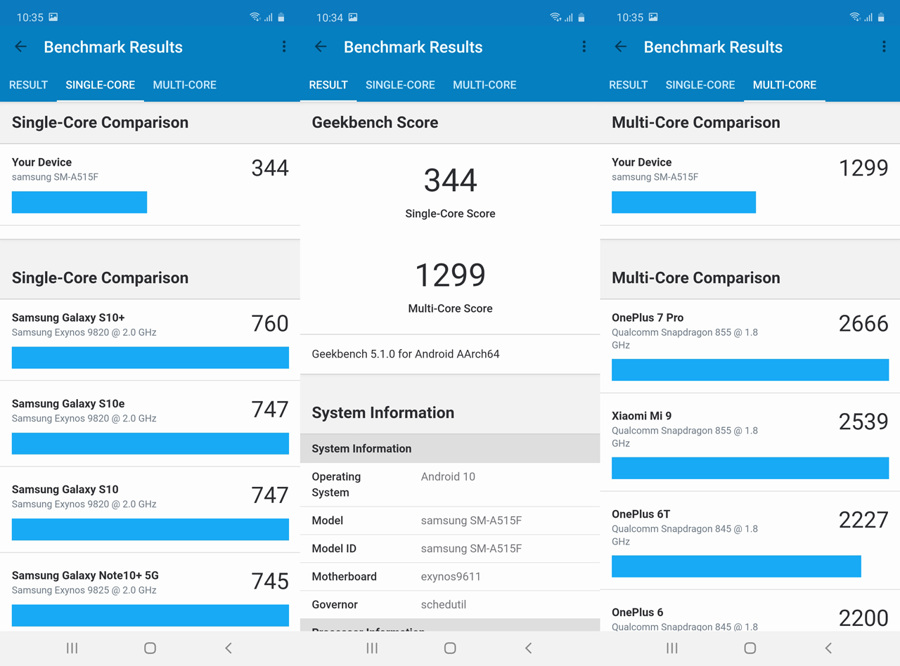 Результаты тестирования производительности Samsung Galaxy A51 в GeekBench: