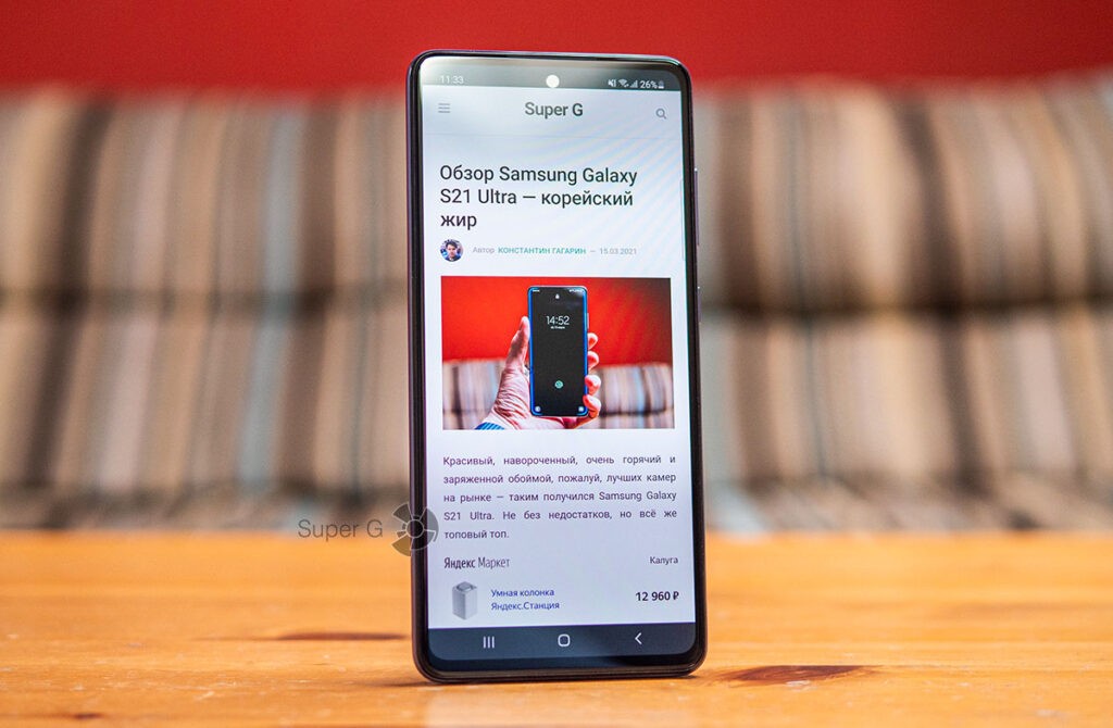 Samsung Galaxy A52, яркость на 200 нит, 60 Гц режим: