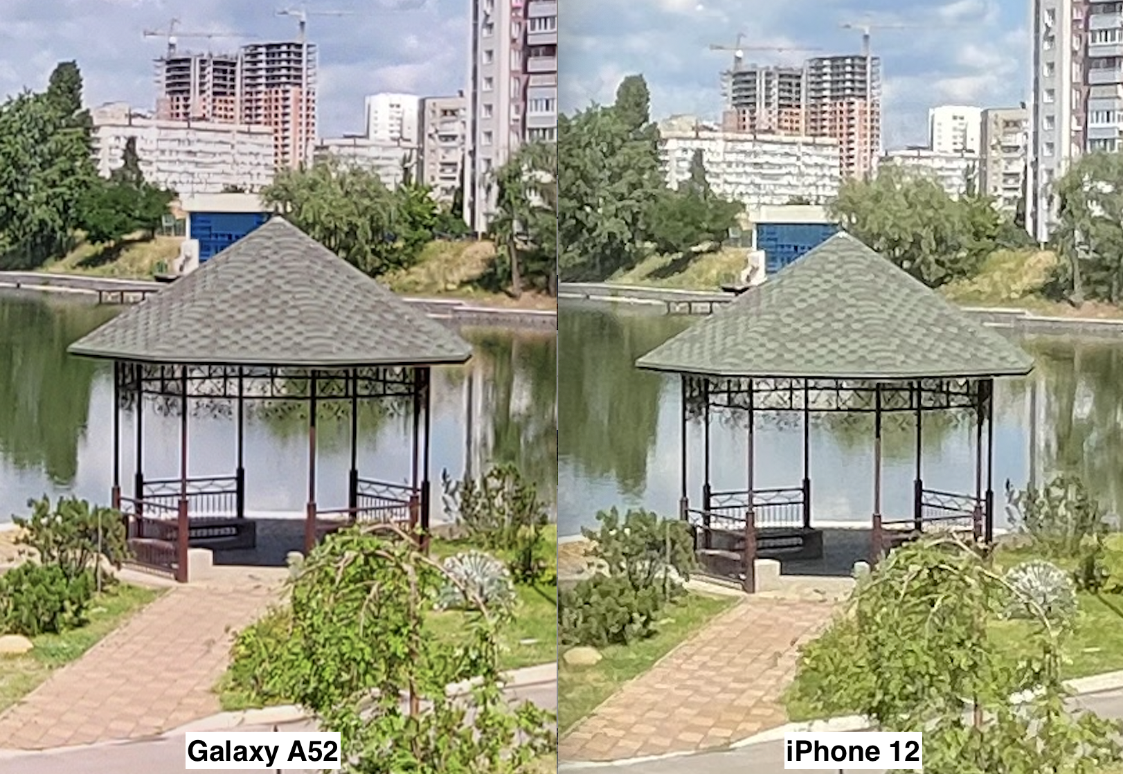 Если сравнить модели по съемке при хорошем освещении на основные камеры, то здесь, с одной стороны, не будет больших сюрпризов, ведь днем оба модуля обеспечивают довольно высокое качество. Но с другой, детализация за счет более высокого разрешения у Galaxy A52 немного выше.