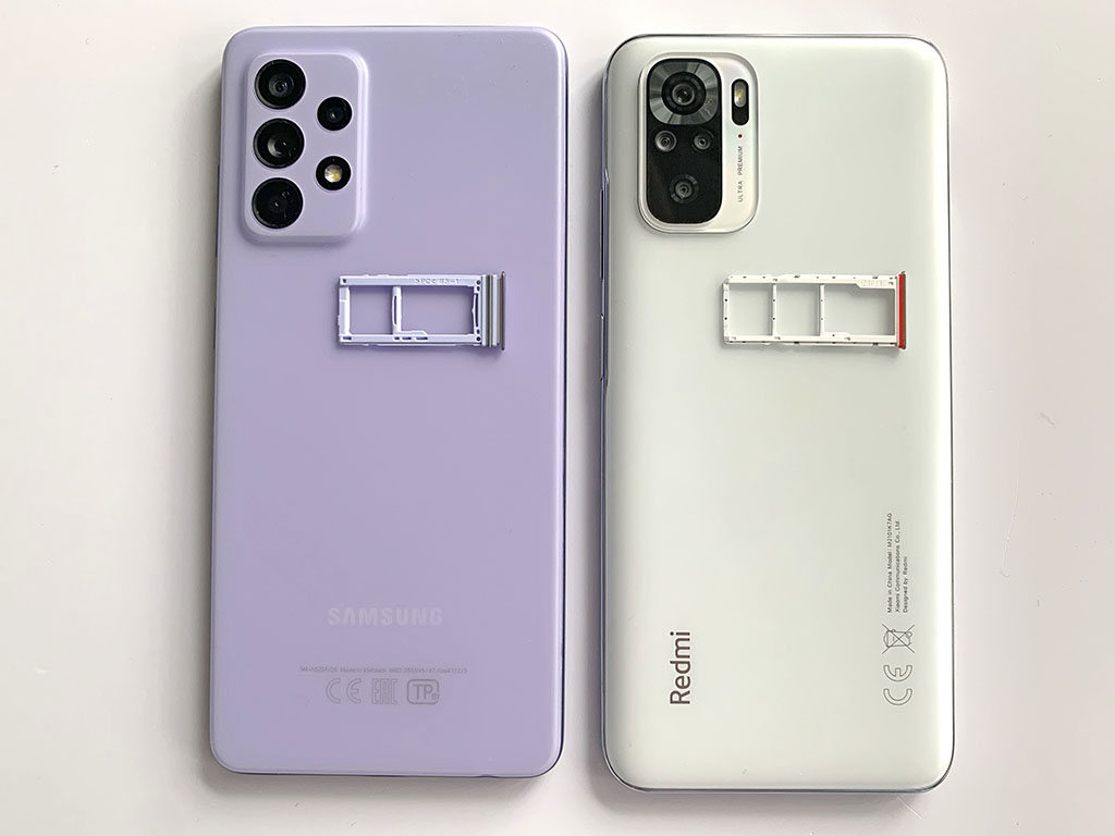 Оба смартфона поддерживают карту памяти micro SD. А52 – до 1 ТБ, Redmi Note 10 – до 512 ГБ. При этом у А52 слот гибридный, в него можно поставить либо две сим-карты, либо одну симку и карту памяти. А у Redmi Note 10 слот 2+1, то есть в него вмещаются одновременно и две сим-карты, и карта памяти.