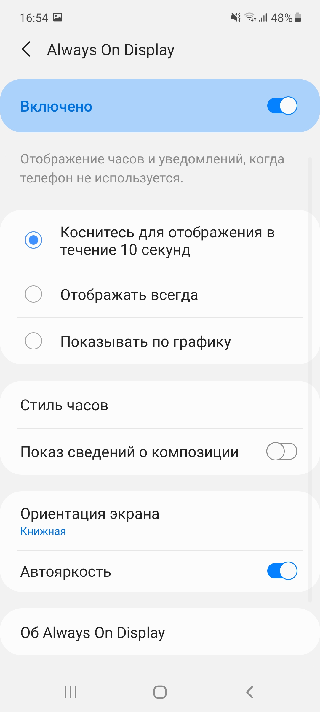 Samsung Galaxy A72 настройки экрана
