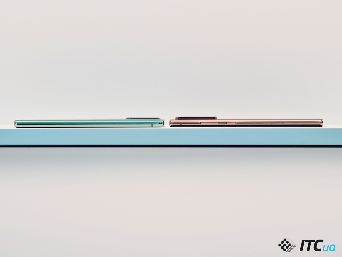 В Note20 Ultra блок с камерами выглядит даже крупнее, чем в S20 Ultra, но не в последнюю очередь из-за того, что толщина корпуса первого составляет 8,1 мм против 8,8 мм у последнего.