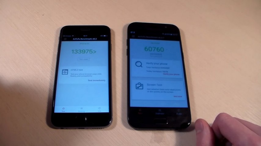 У телефона от Apple это retina-дисплей. Плотность — 326 пикселей, разрешение — 720 на 1334 пикселя. У A 5 — Full HD. То есть 1920 на 1080 пикселей. Но типы матрицы — у Galaxy a5 2017 — Super Amoled, у Айфона 6 S — IPS.