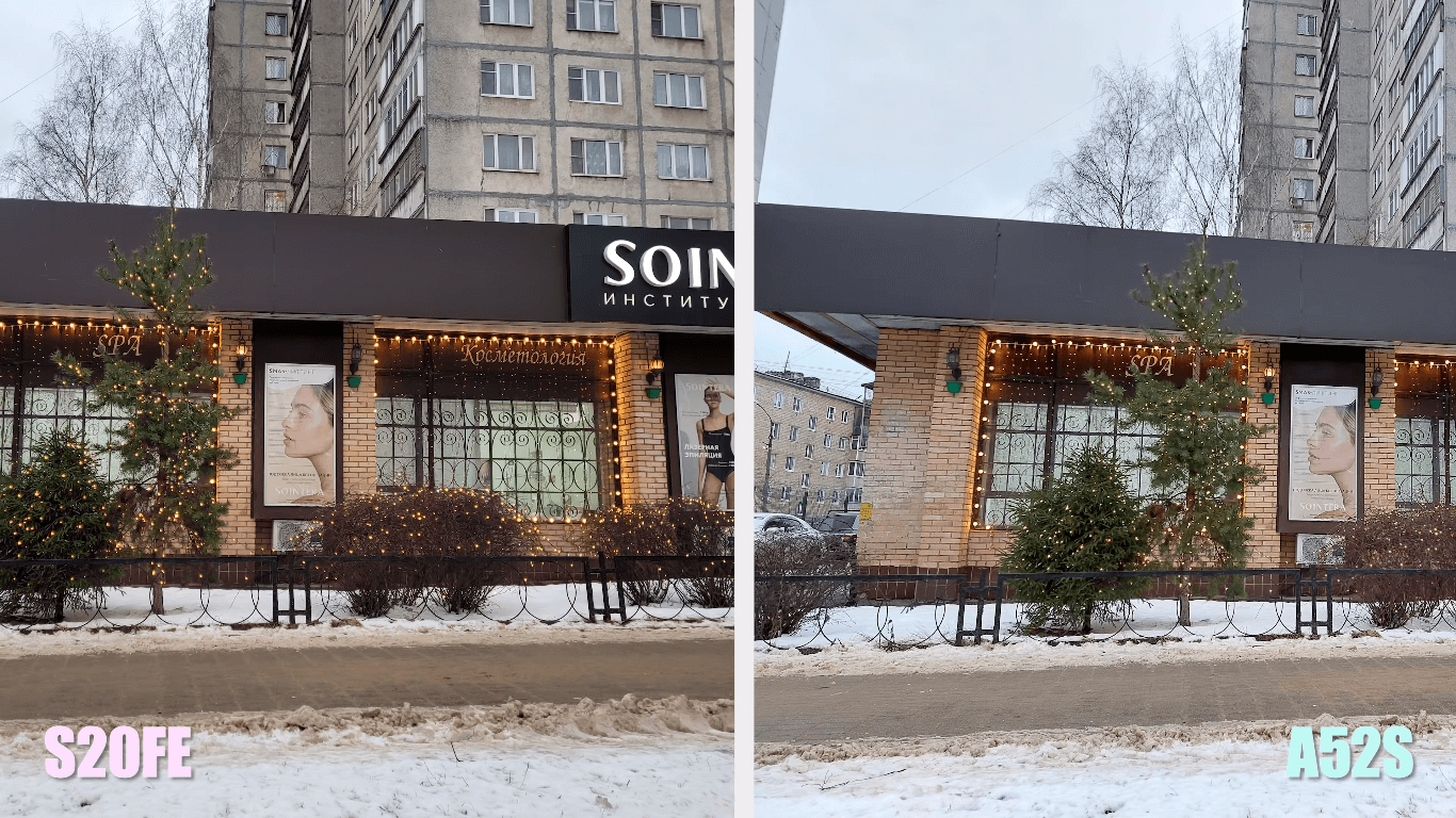Если сравнить модели по съемке при хорошем освещении на основные камеры, то здесь, с одной стороны, не будет больших сюрпризов, ведь днем оба модуля обеспечивают довольно высокое качество. Но с другой, детализация за счет более высокого разрешения у Galaxy A52 немного выше.