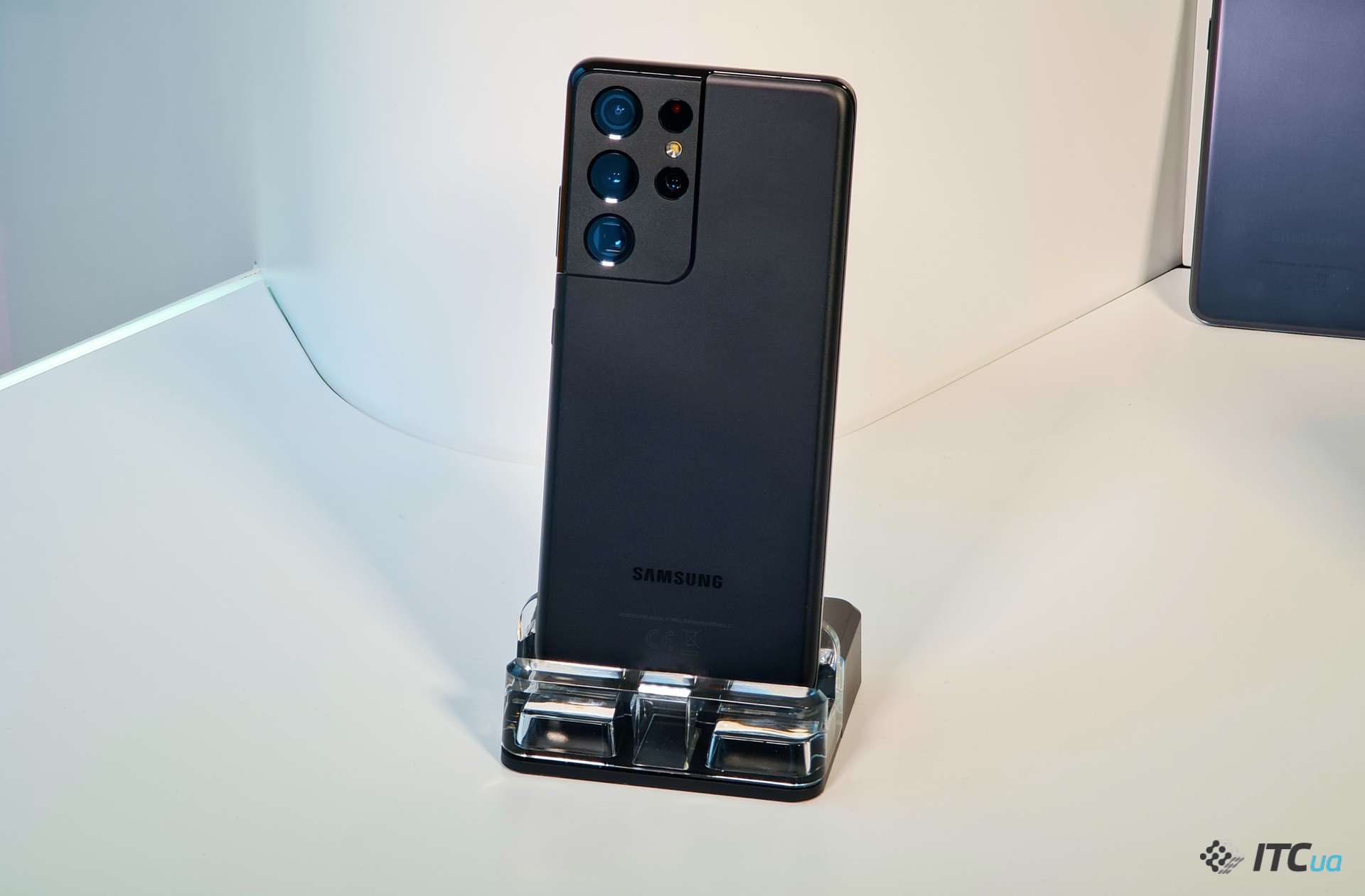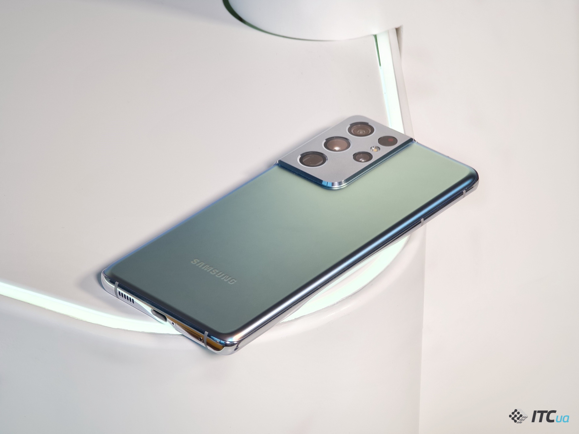 Сказывается использование 108-мегапиксельного модуля с крупной матрицей. Остальную часть тыльной крышки S21 Ultra покрывает матовое стекло. У смартфона будет два цвета корпуса: серебристый, который переливается другими оттенками в зависимости от окружающего света, а также матово-чёрный.