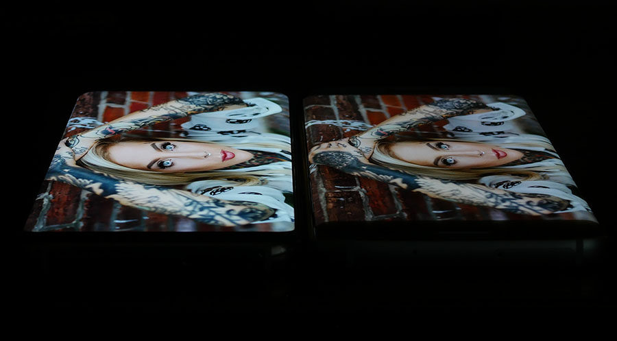 Под экстремальными углами инверсии практически нет. В обоих аппаратах появляется лёгкий зеленоватый оттенок («спасибо» AMOLED`у), у семёрки он выражен чуть сильнее. Тем не менее, это совсем не тот криминал, что был раньше.