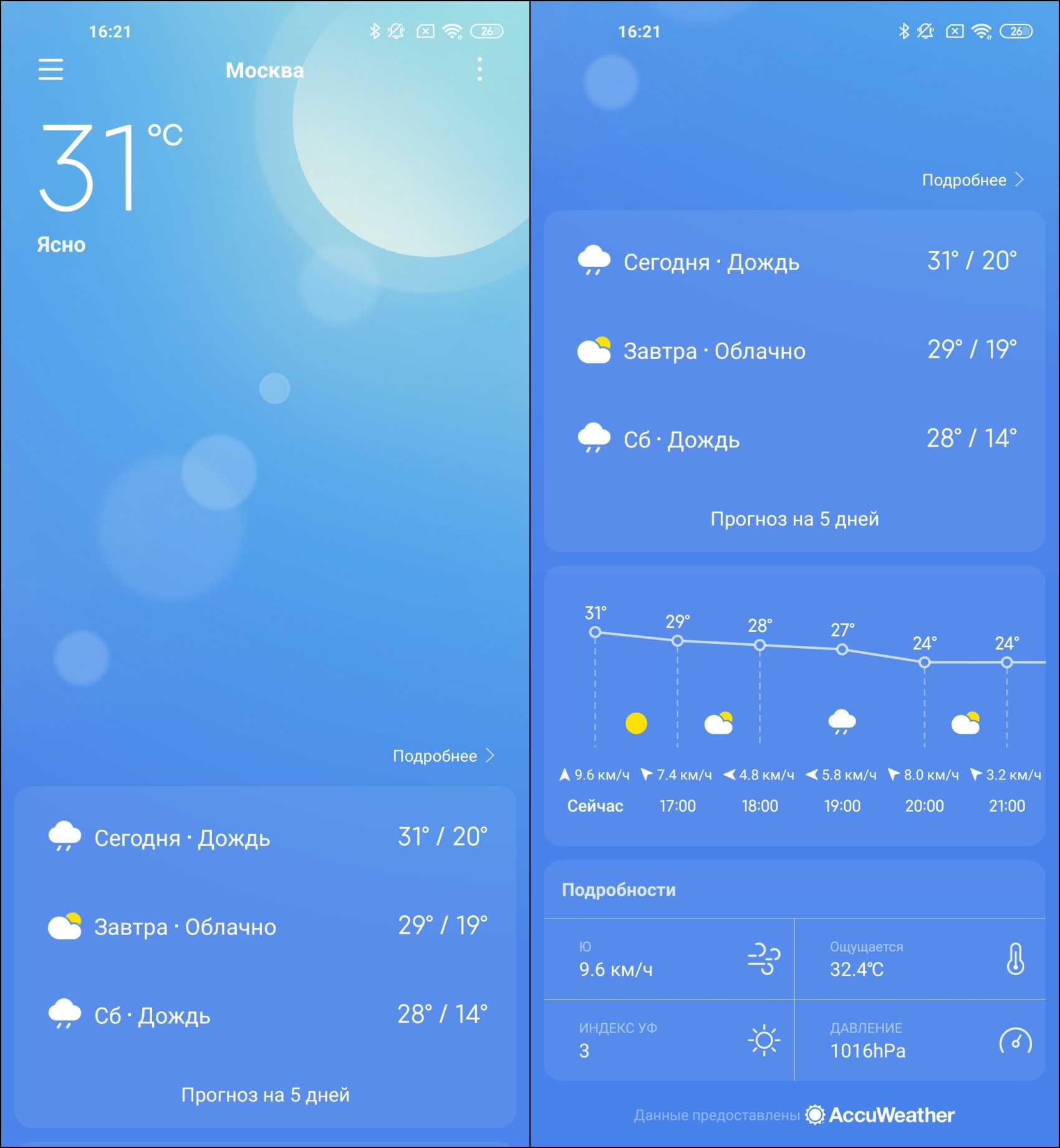 В MIUI простое меню настроек, очень приятные заметки, очень крутое приложение погоды, основаное на данных AccuWeather: