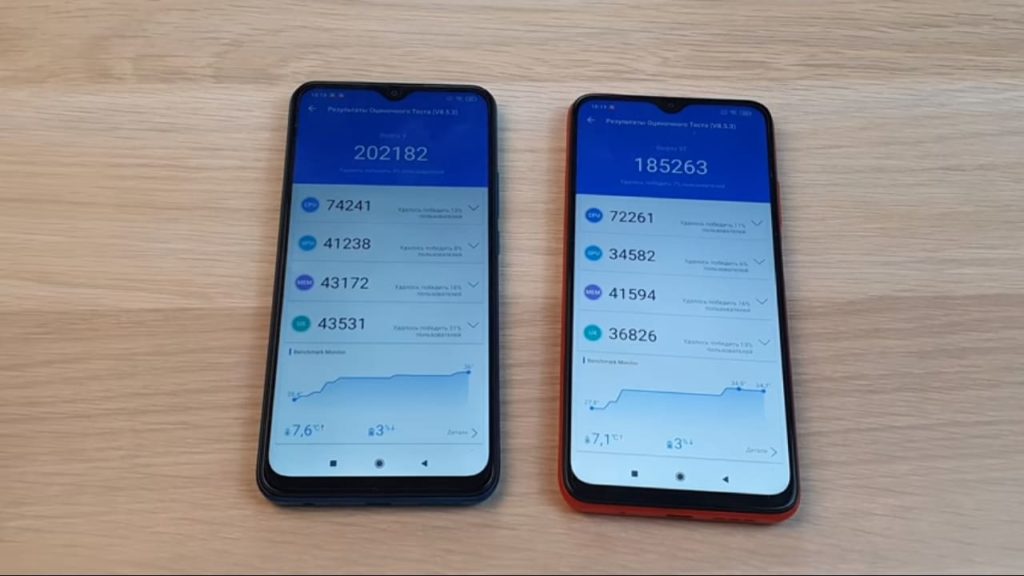 Redmi 9 (слева) и Redmi 9T (справа). Тесты AnTuTu.