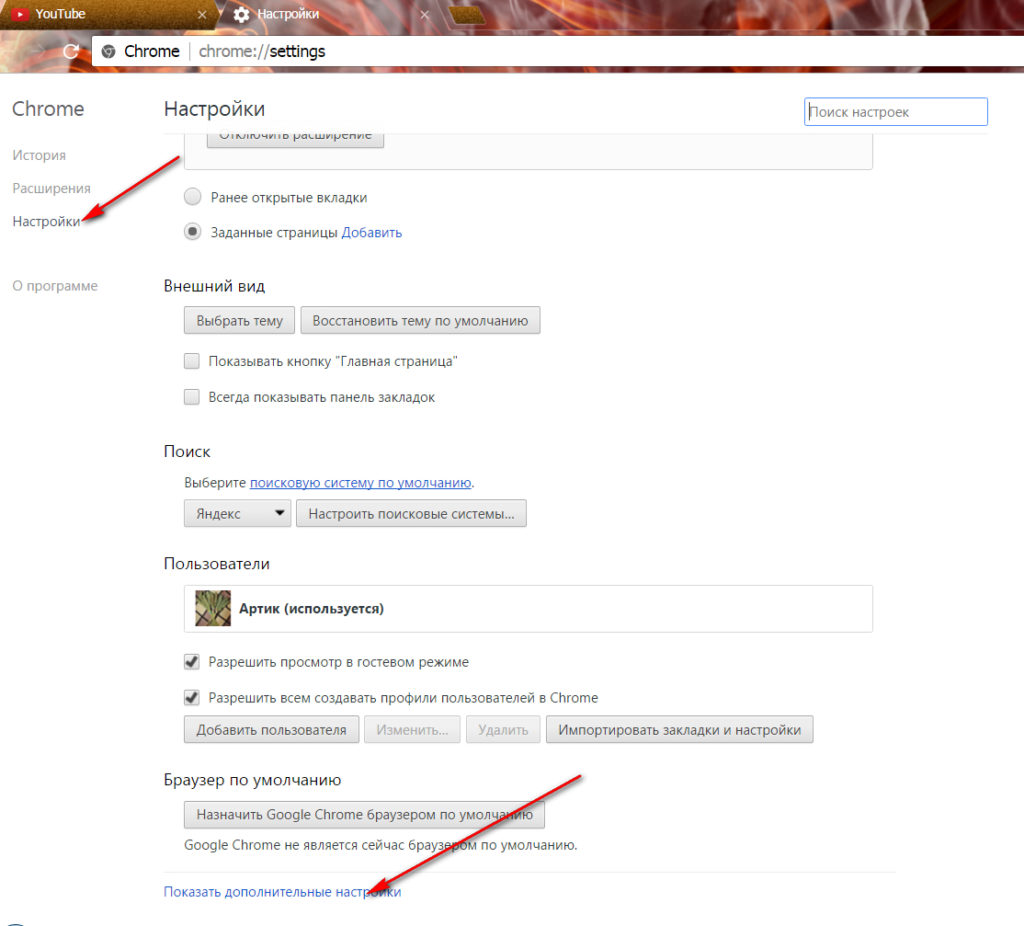 Затем в разделе «Настройки» прокручиваем страницу вниз и нажимаем на «Показать дополнительные настройки».