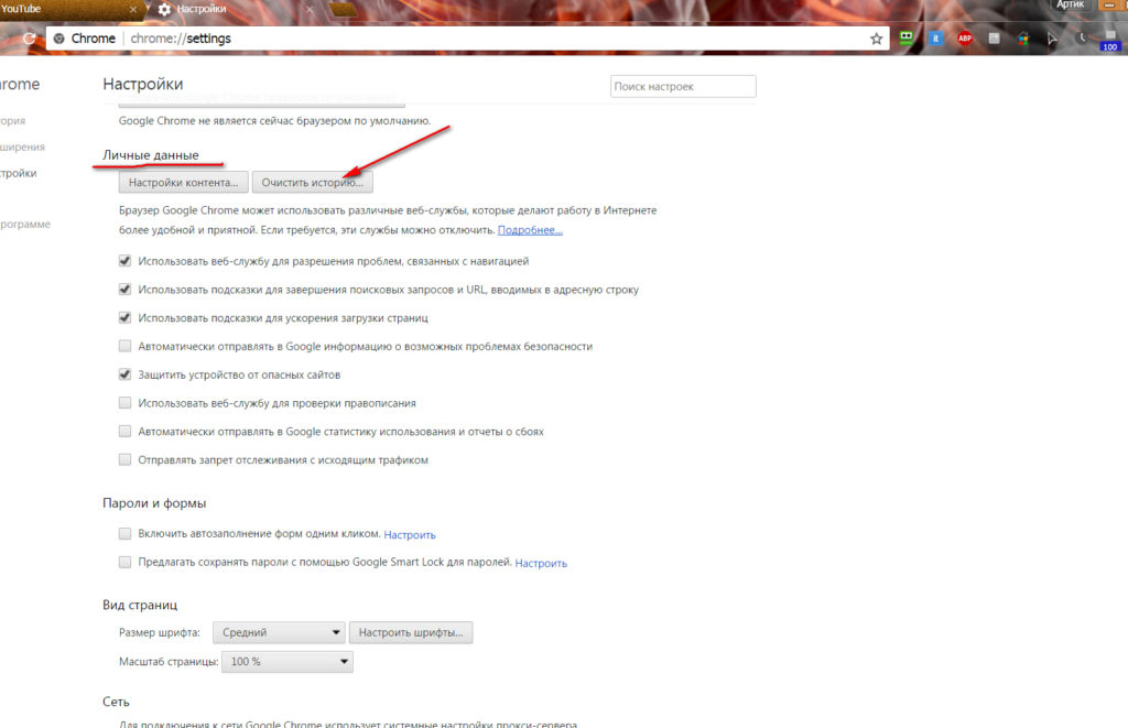 Снова немного прокручиваем страницу вниз и под разделом «Личные данные» нажимаем на кнопку «Очистить историю».