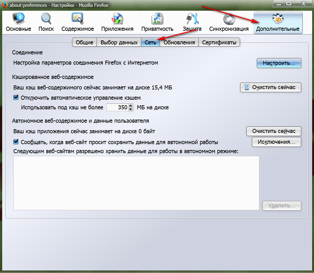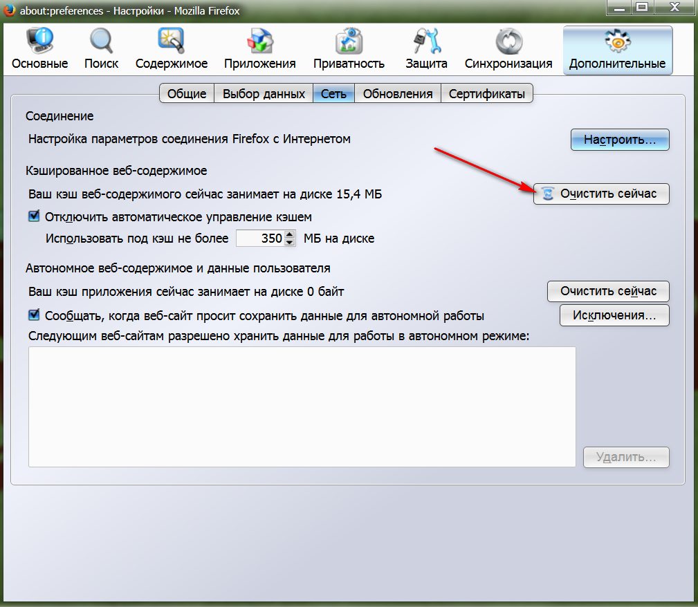 Медленная работа Интернета из-за переполненности кеша в браузере