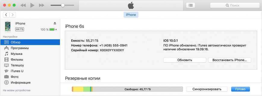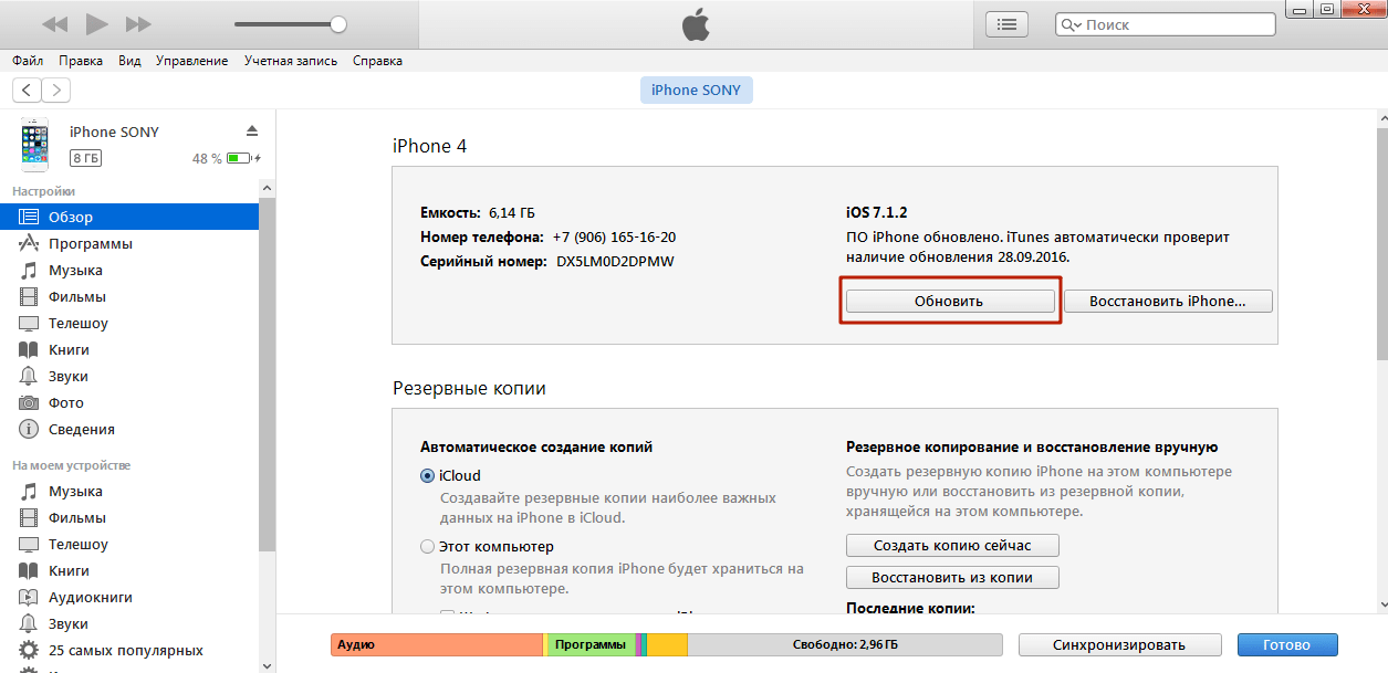 Для того, чтобы обновить iPhone при помощи iTunes выполните следующие действия: