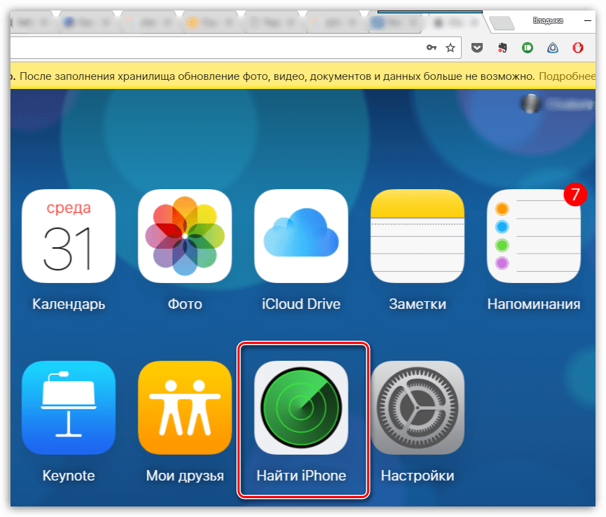 На экране развернутся параметры настройки работы облачного сервиса Apple. Здесь вам потребуется пройти к пункту «Найти iPhone».