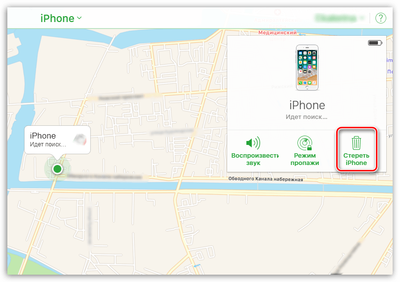 Когда в верхнем правом углу появится окошко, выберите пункт «Стереть iPhone».