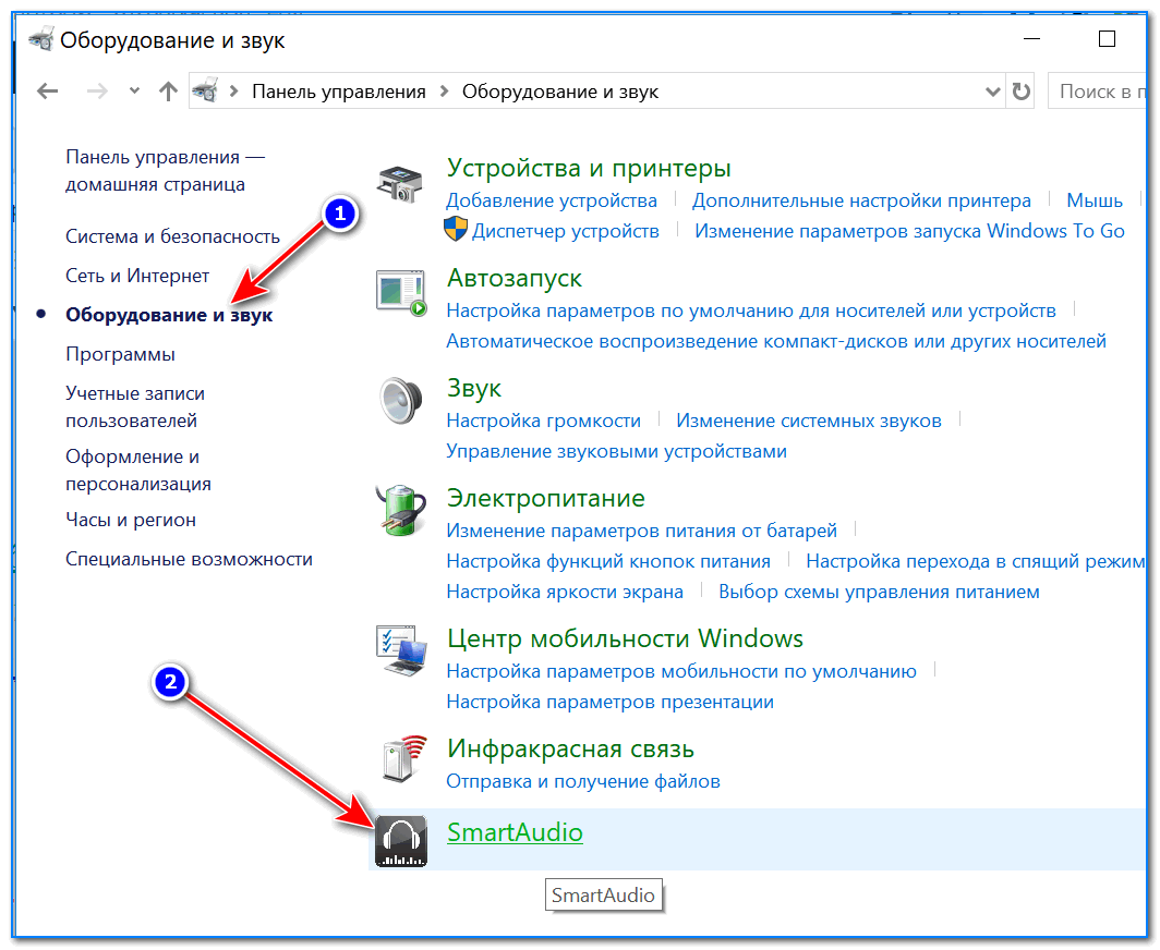 () в разделе «Оборудование и звук», должна появиться ссылка на его настройку (например, панель управления Realtek, Smart Audio, Dell Audio и пр.)