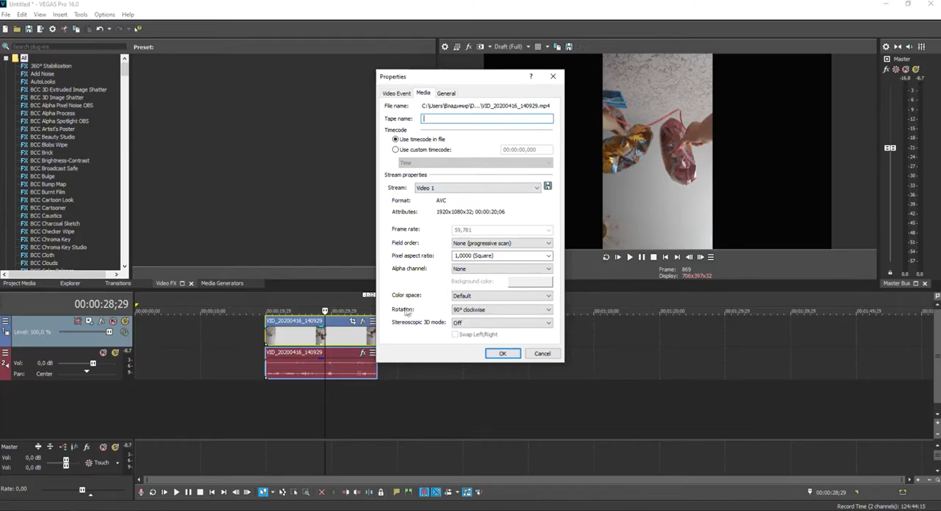Sony Vegas Pro — мощная программа для монтажа роликов. Используя ее, вы можете выполнить как базовую обработку (поворачивание, обрезка, склейка фрагментов, изменение аудиодорожки, вставка изображений), так и профессиональную (стабилизация изображения, хромакей, специальные эффекты и т. д.). Приложение имеет сложный интерфейс, поэтому потребуется время, чтобы разобраться в нем и понять, как повернуть видео на компьютере и сохранить.