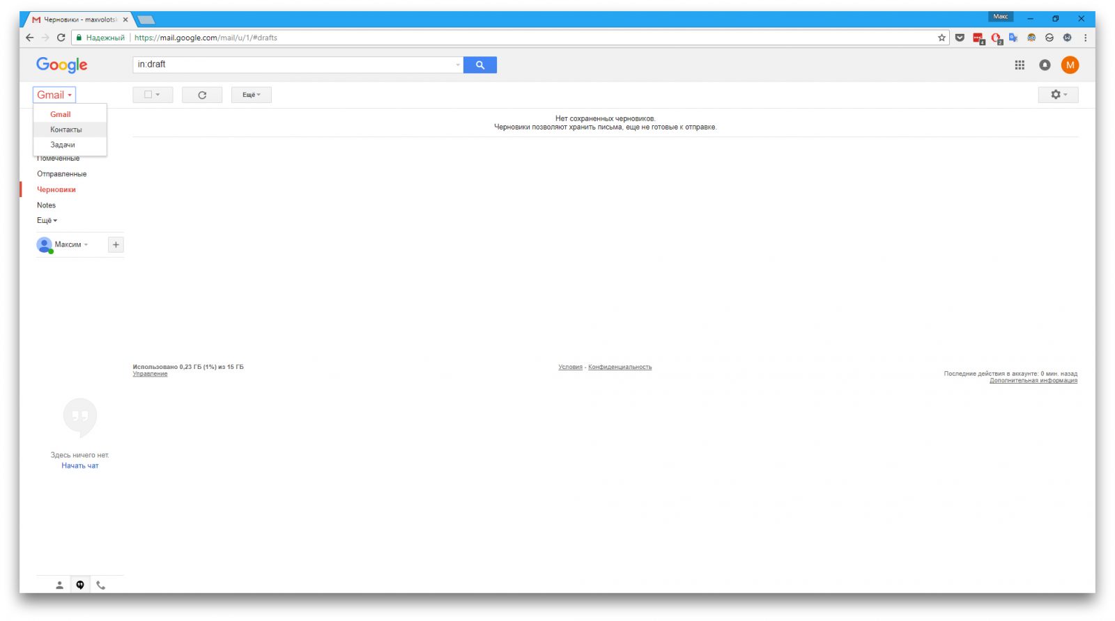 Откройте браузер и войдите в через аккаунт, связанный со смартфоном. Кликните Gmail → «Контакты».