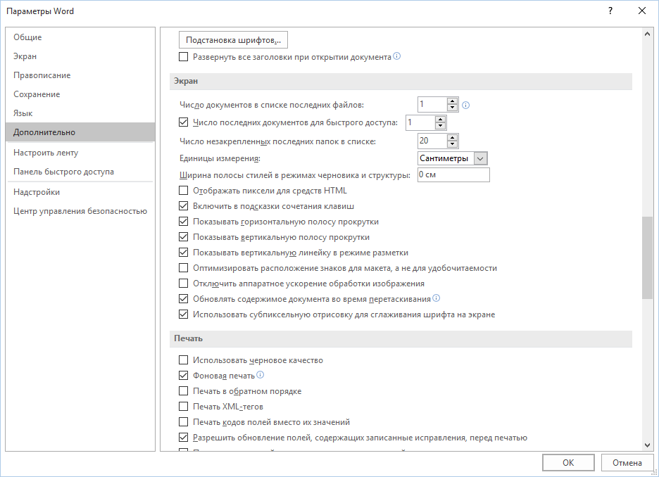 Чтобы пресечь это безобразие, в новых версиях Office нужно в параметрах перейти в раздел «Дополнительно», установить число последних документов равным единице (обрати внимание — на скриншоте есть два параметра, которые нужно поменять на единицу). Значение 0 программа установить не позволит, поэтому последним нужно будет открыть какой-нибудь безобидный файл