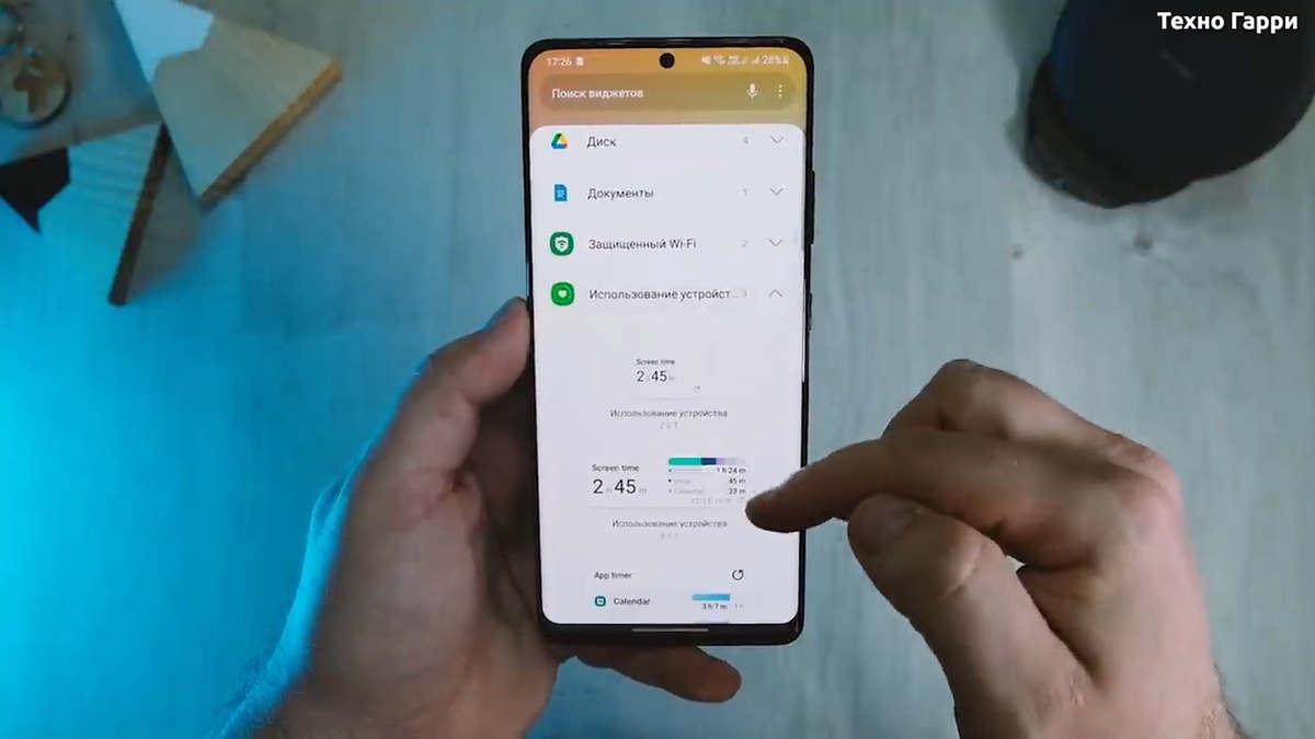 Теперь перемещаемся в панель виджетов. Касаемся на секунду в пустом месте главного экрана и выбираем меню Виджеты. Вот как оно теперь выглядит. Это больше похоже на исполнение Android 12, и на мой взгляд оно намного лучше, чем горизонтальное перелистывание виджетов по одному. что было у предыдущей One UI. Здесь мы можем найти нужный виджет через поиск, либо пролистать вниз.