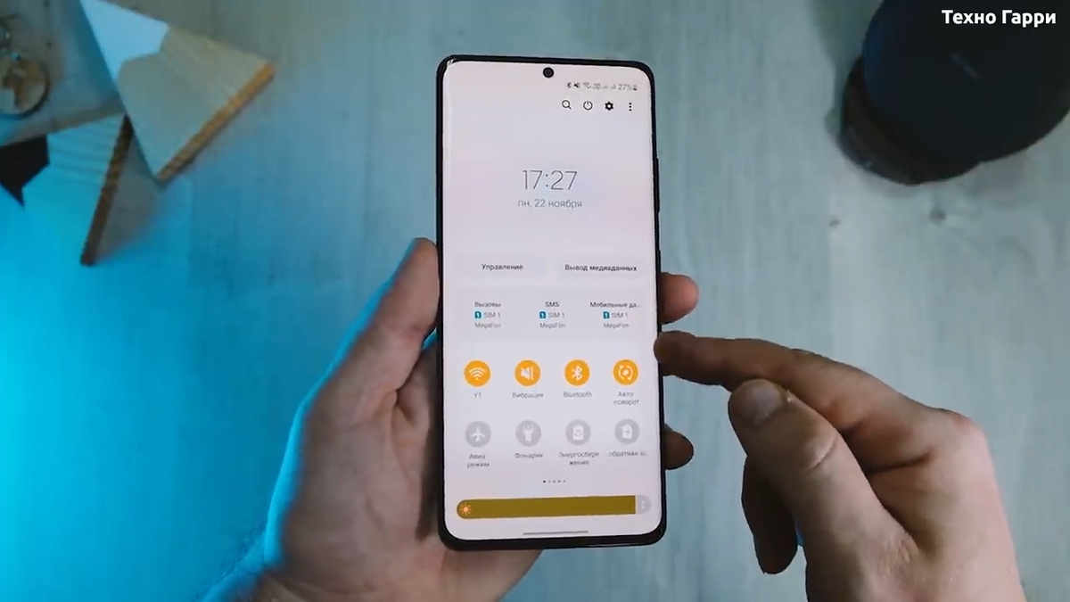 Вот здесь пункт Данные о Sim картах выбираем “Не показывать”. Теперь у нас как и положено три ряда навигационных кнопок в шторке.