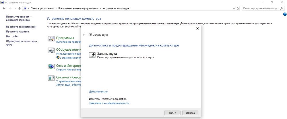 Активировать инструмент «Устранение неполадок звукозаписи».