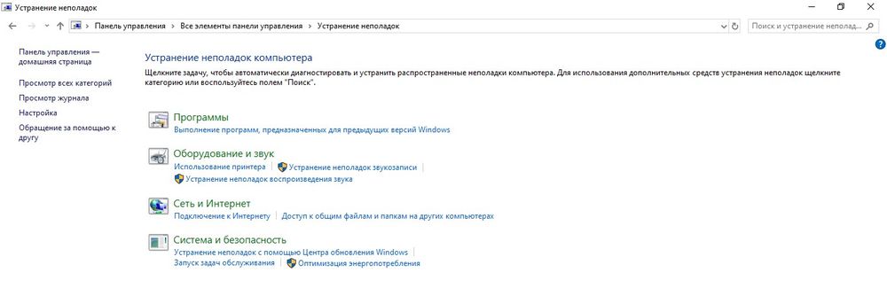 В «Панели управления» выбрать «Устранение неполадок».