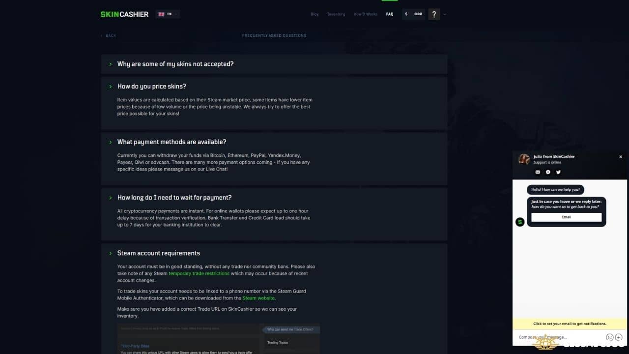 Skincashier is the only site that will withdraw money instantly via PayPal. On other sites of this type you usually have to go through several verification procedures to withdraw money using this payment processor. Skincashier is a fairly new company, as it was founded in 2020, but on TrustPilot it has over 800 reviews and a really high rating.