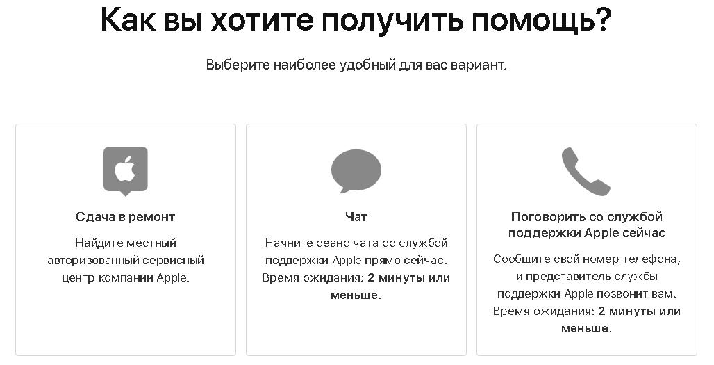 Шаг 2а. Попутно можно обратиться в офиц. поддержку Apple через сайт и описать всю ситуацию. Вам будут предложены варианты — чат или звонок.