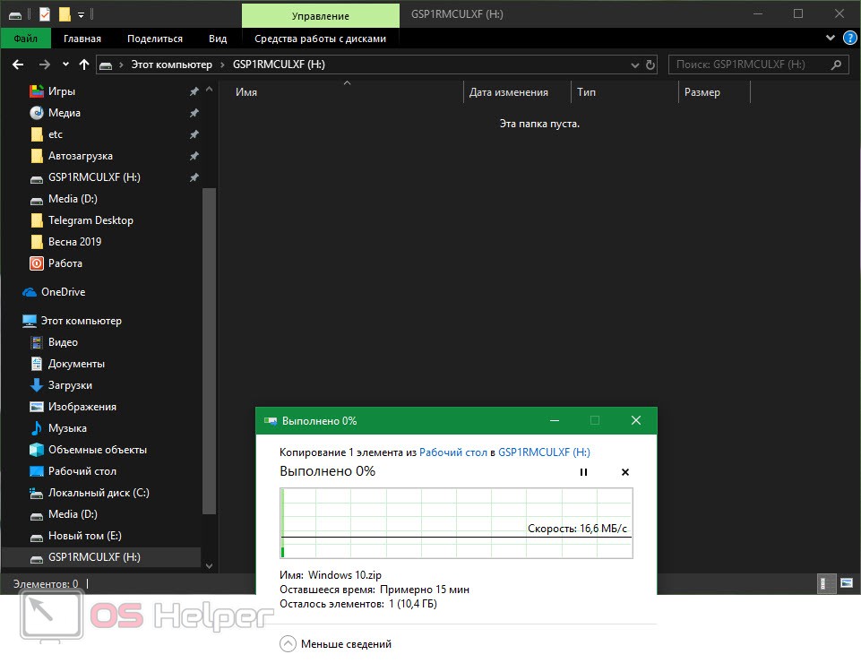 Процесс копирования файлов на флешку