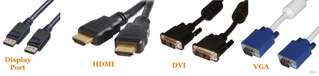 Соединить ПК и телевизор можно с помощью кабелей с одинаковыми коннекторами или переходниками.