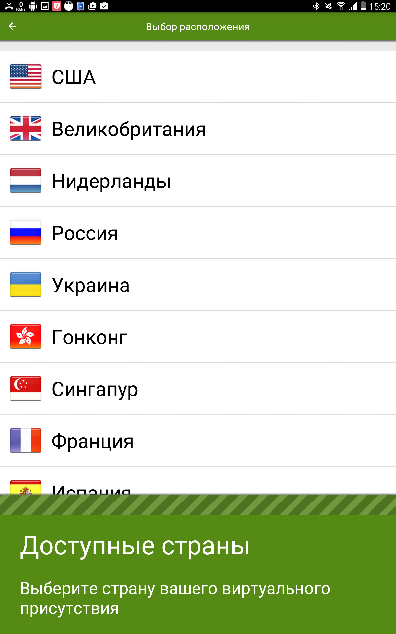 Единственный из описываемых сервисов, предоставляющий, помимо приложения, еще и классический VPN. Имеются серверы в следующих странах: