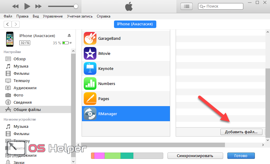 - Выберите документ с контактами. Еще можно просто перетащить его в iTunes.