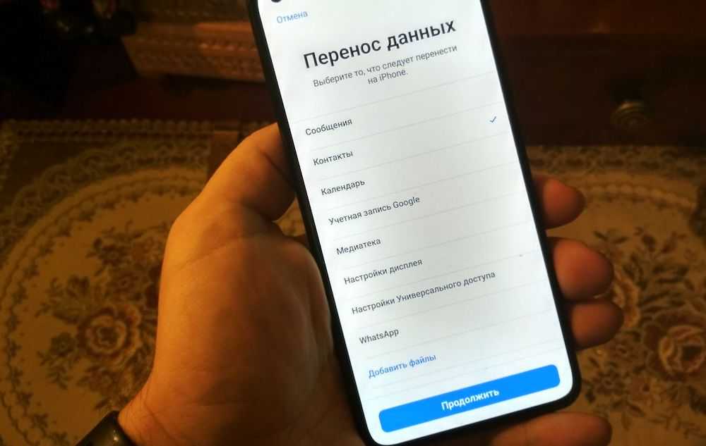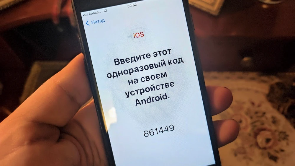- Код появится на экране яблочного телефона в момент «Перенос с Android».