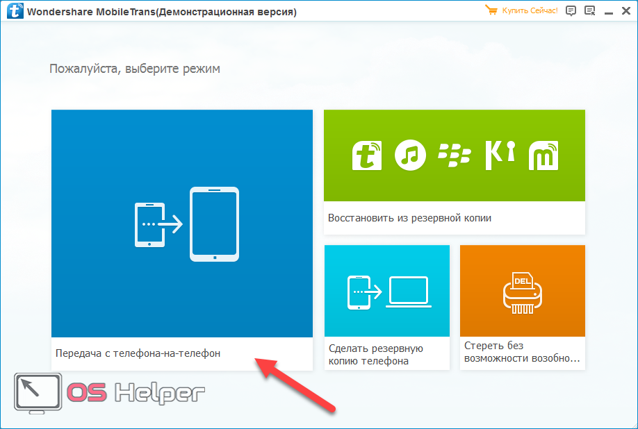 - В приложении выберите пункт «Передача с телефона на телефон».