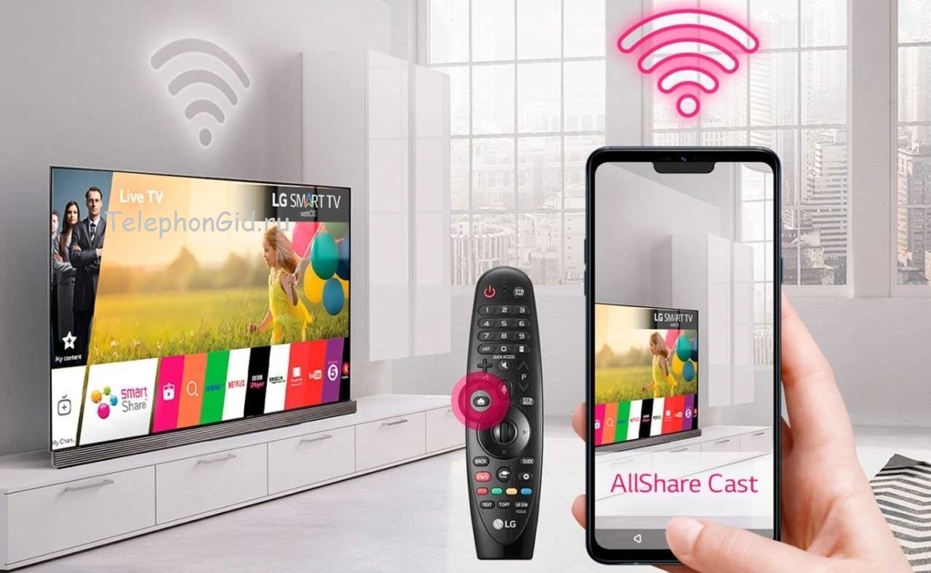Пожалуй, главный метод беспроводного соединения двух устройств. Его преимущество заключается в том, что человек может вывести на большой экран любое меню смартфона, а также запустить игры. При этом не будет задействован ни один провод.