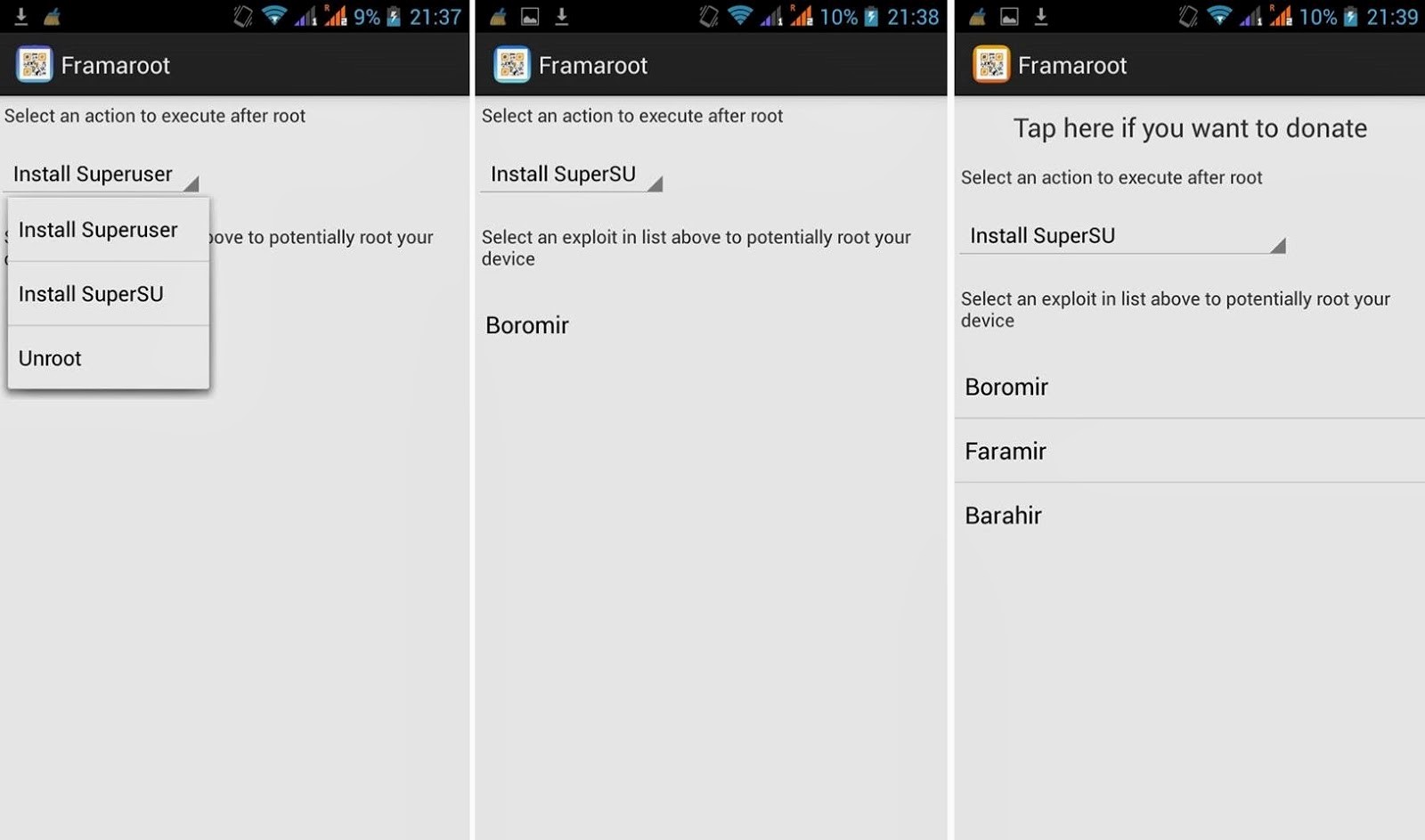 - На первой же странице вам будет предложено выбрать тип прав – укажите SuperUser или SuperSU;