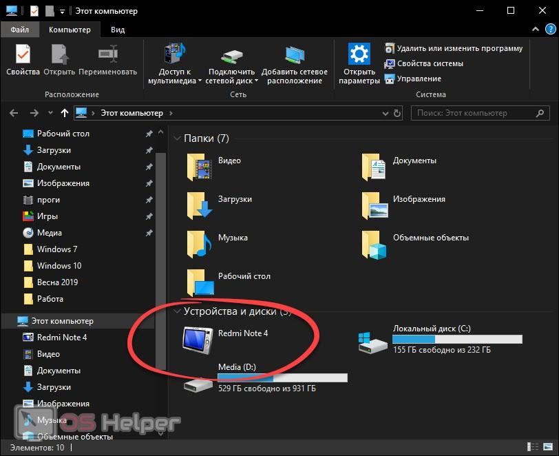 - В разделе «Устройства со съемными носителями» у вас должен будет появиться новый ярлык с названием вашего телефона.