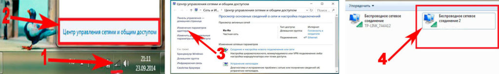 Удостоверившись, что новый модуль появился, переходим к его настройки. Заходим «Центр управления сетями….», с левой стороны «Изменения параметров адаптера». Вы должны увидеть еще один адаптер «Беспроводное сетевое соединение — 2».