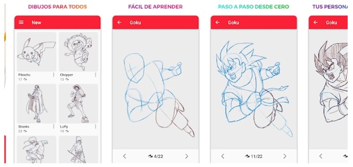 С WeDraw вы научитесь рисовать карандашом и бумагой шаг за шагом., выберите рисунок, который вам больше всего нравится, и начните рисовать, следуя инструкциям, которые приложение отметит для вас. С помощью этого известного приложения вы научитесь рисовать мангу, аниме и мультфильмы из известных сериалов и видеоигр.