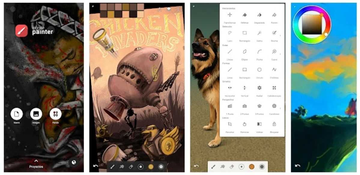 Infinite Painter представляет собой самый продвинутый движок рисования на планшетах., создавать художественные рисунки всех видов с помощью эскизов, доступных в приложении, и придавать им индивидуальный вид. В приложении есть 160 различных кистей, помимо возможности создать свою собственную кисть, и оно адаптируется для создания более толстых и тонких линий.