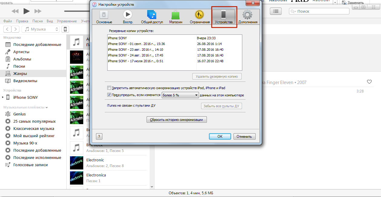 Резервная копия iPhone в iTunes