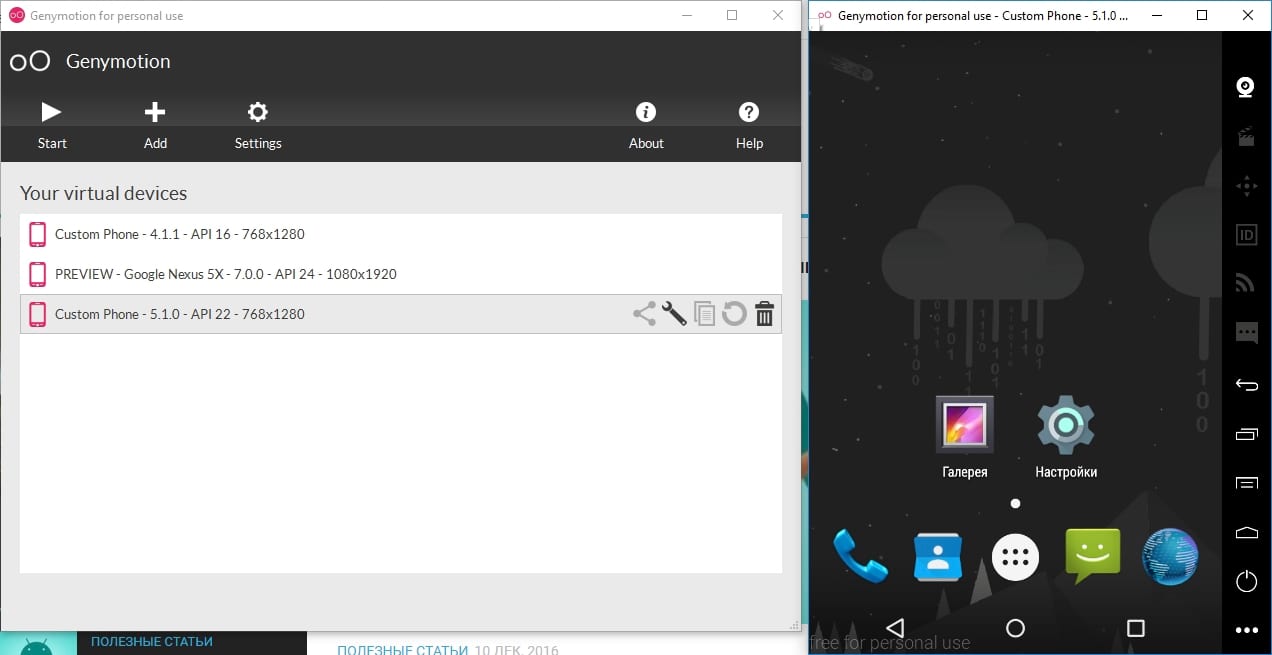 - Эмулятор Андроид Genymotion имеет преимущество, так как можно выбирать, какое устройство вы хотите отобразить на своем компьютере.