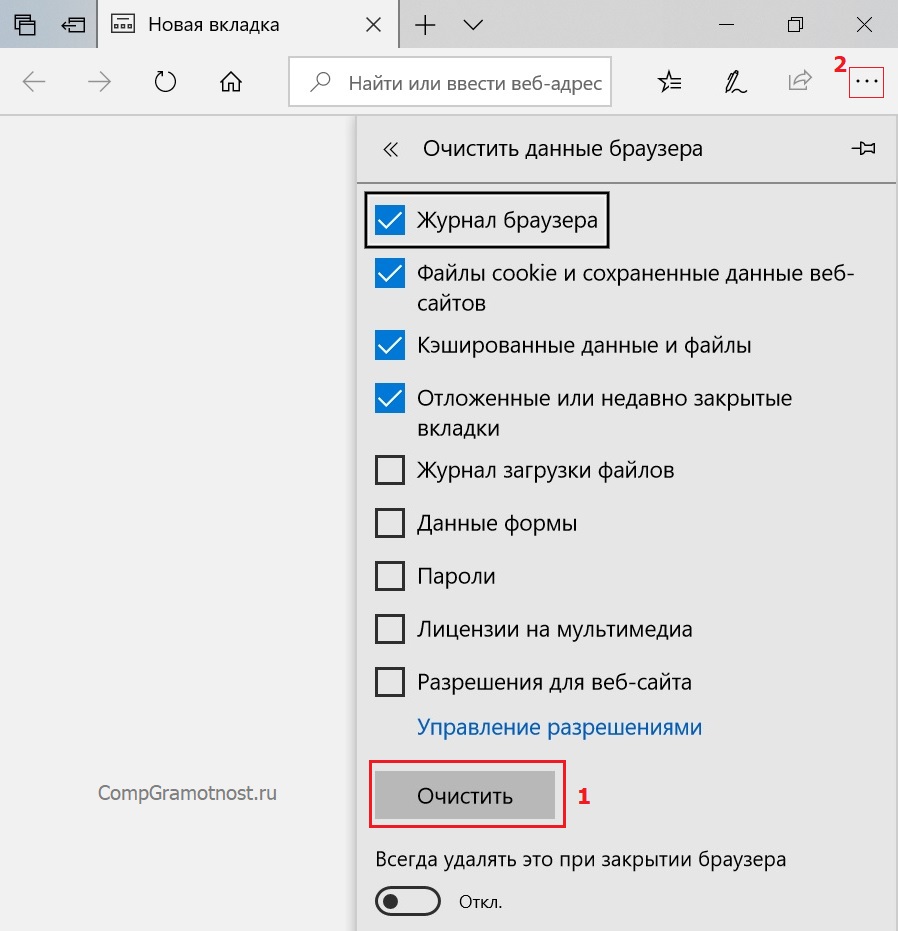 Рис. 7. Очистка кеша в браузере Microsoft Edge