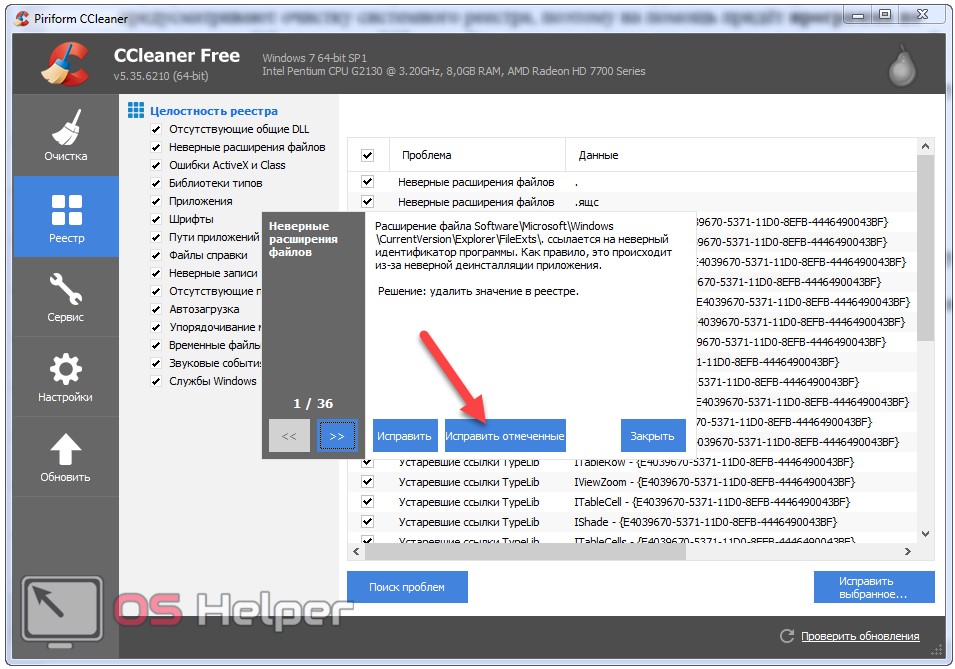 - Активируем кнопку «Исправить выбранное…» и жмём «Да», чтобы создать резервную копию удаляемых записей.