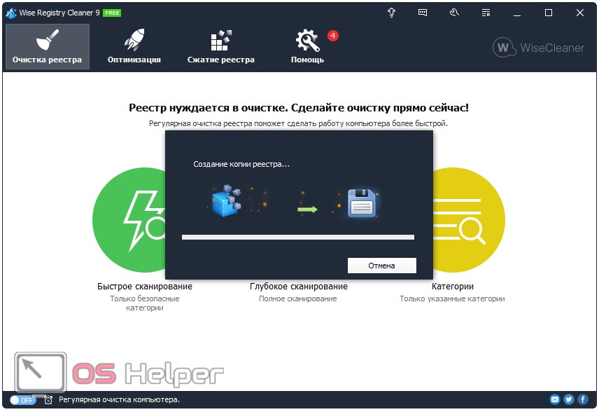 - Устанавливаем и запускаем Wise Registry Cleaner.