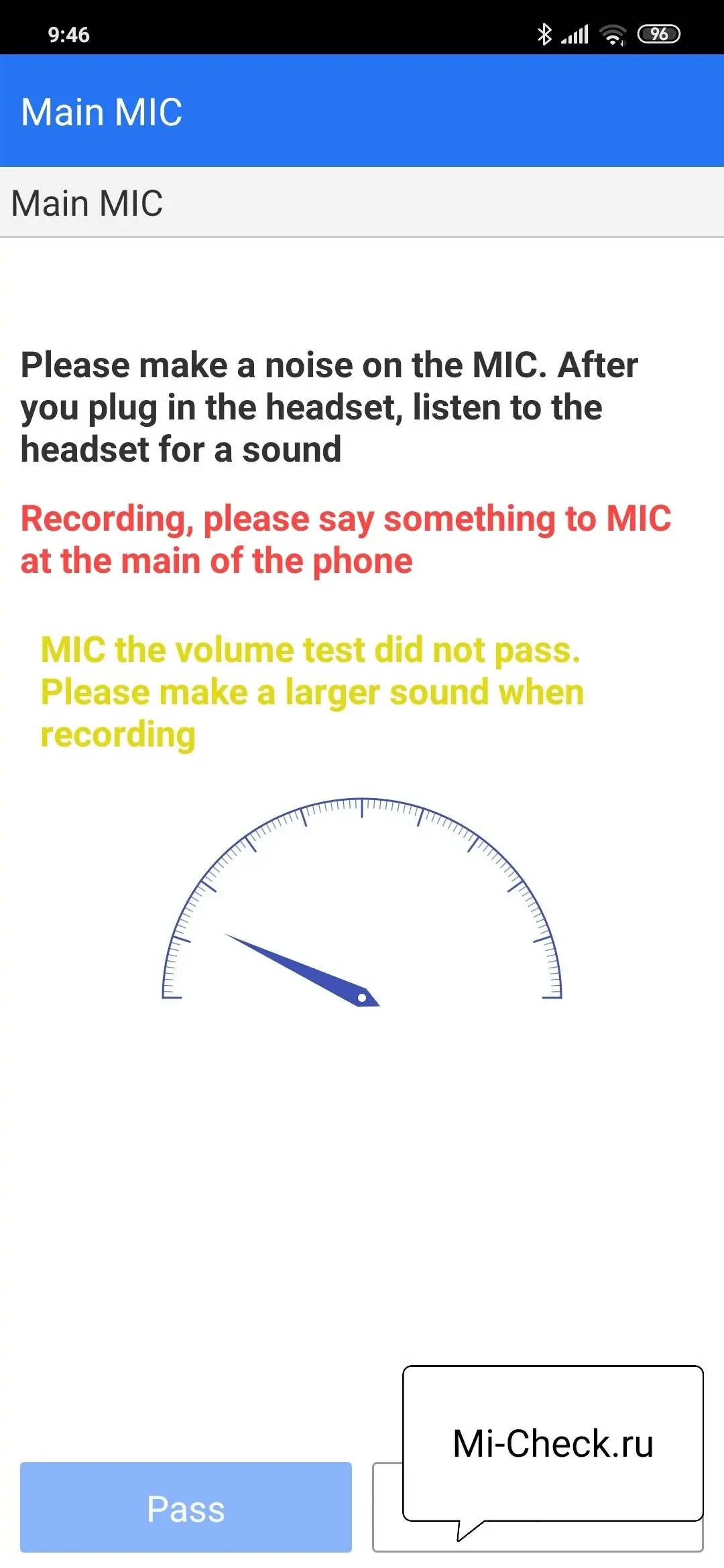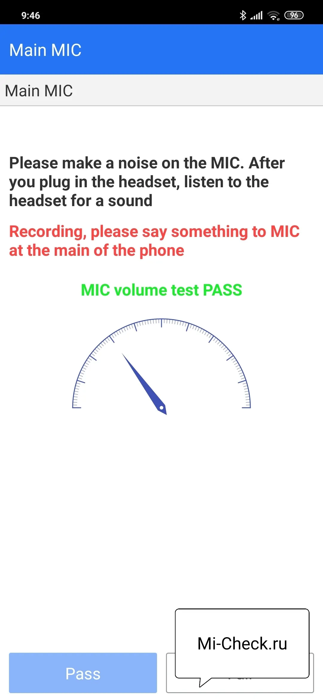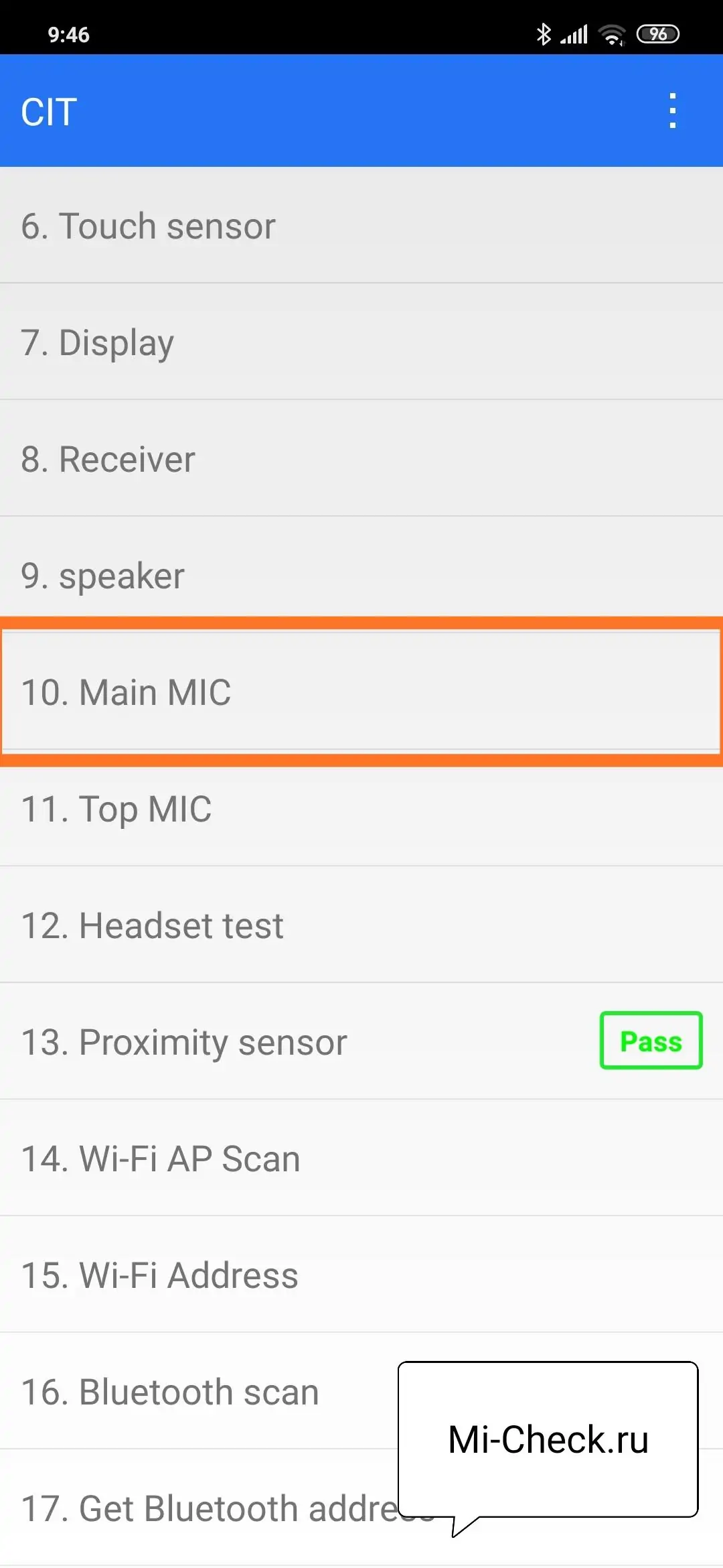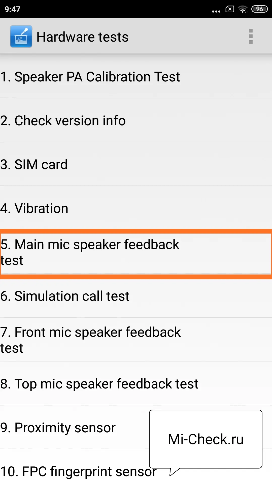 Приведу пример того, как это выглядит на Mi 9 SE и на старом Mi 5. В меню Mi 9 SE тест главного микрофона автоматический, он называется «Main MIC».