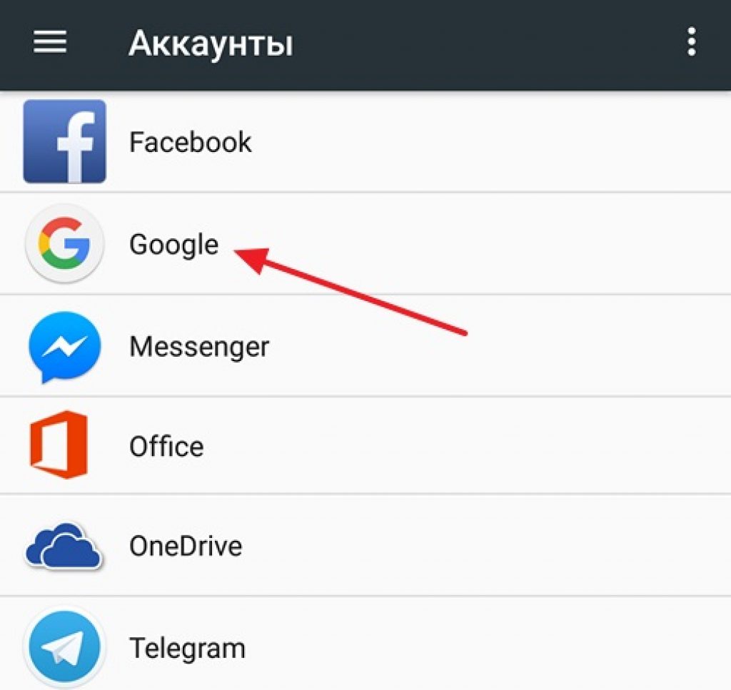 - Заходим в список доступных аккаунтов (как это сделать описано выше) и нажимаем на кнопку «Google».
