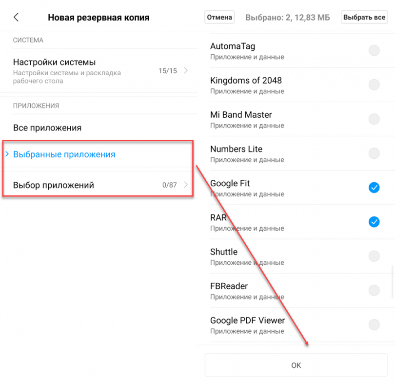 Шаг 4. Если вы хотите отключить синхронизацию других приложений, то нажмите на «Выбор приложений» и отметьте те объекты, данные которых не планируете сохранять.