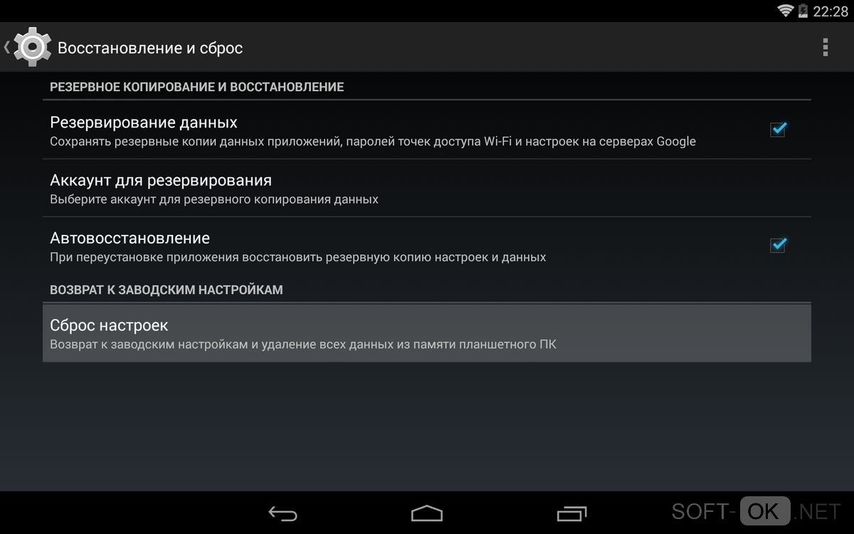 Что делать, если ошибка синхронизации аккаунта гугл android не устраняется вообще? Единственным вариантом станет сброс установок до заводских, чтобы провести такую процедуру необходимо выполнить несколько простых действий:
